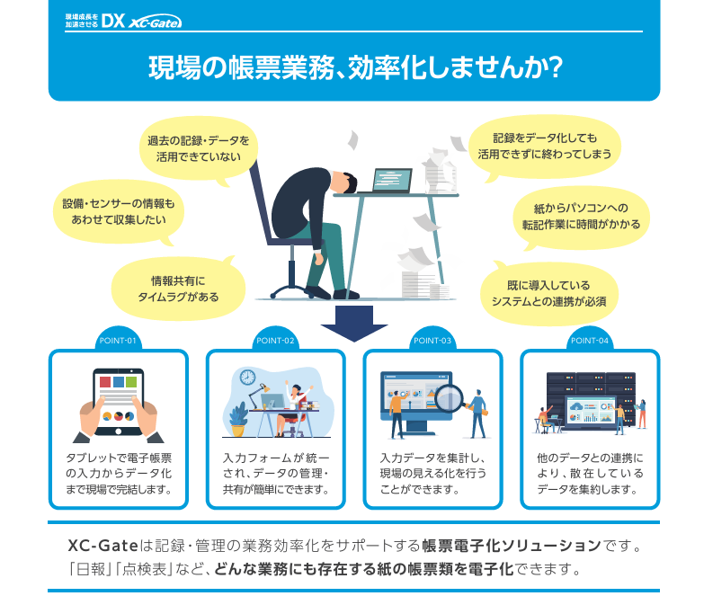 紙や手書きによる情報の属人化・タイムラグを解消する。